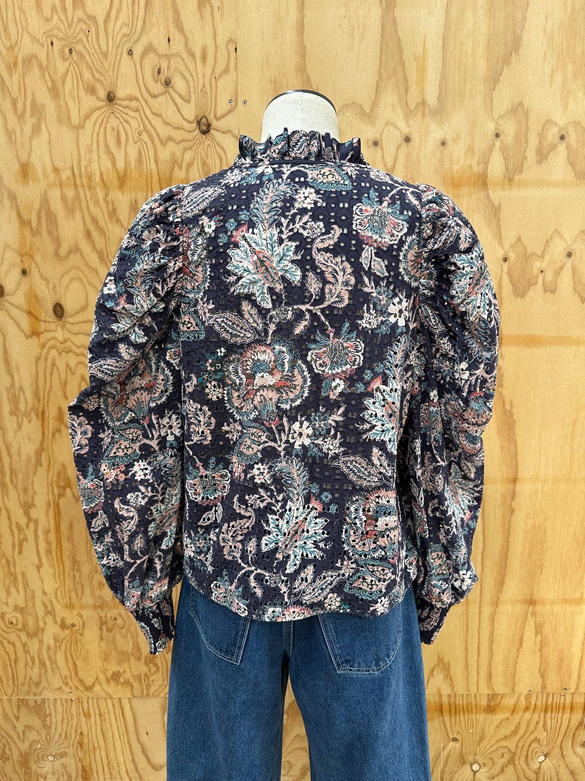 HUSK BRODERIE ANGLAISE NAVY FLORAL BLOUSE - SIZE 12