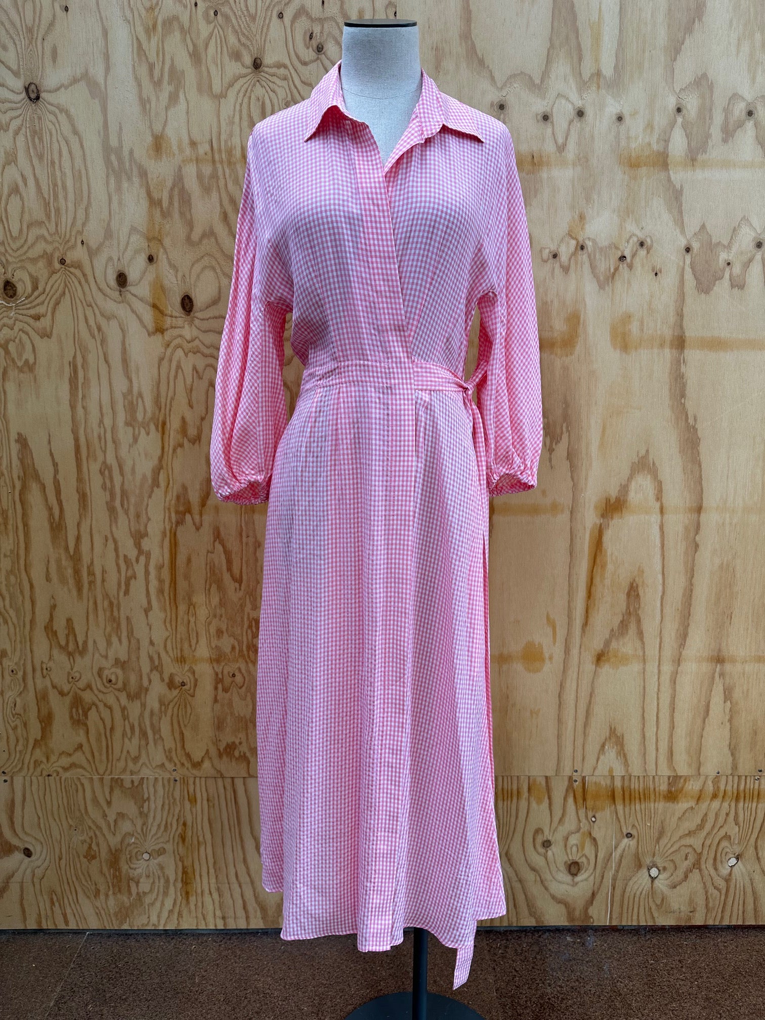 SCANLAN THEODORE GINGHAM WRAP MIDI SHIRTDRESS - SIZE MEDIUM