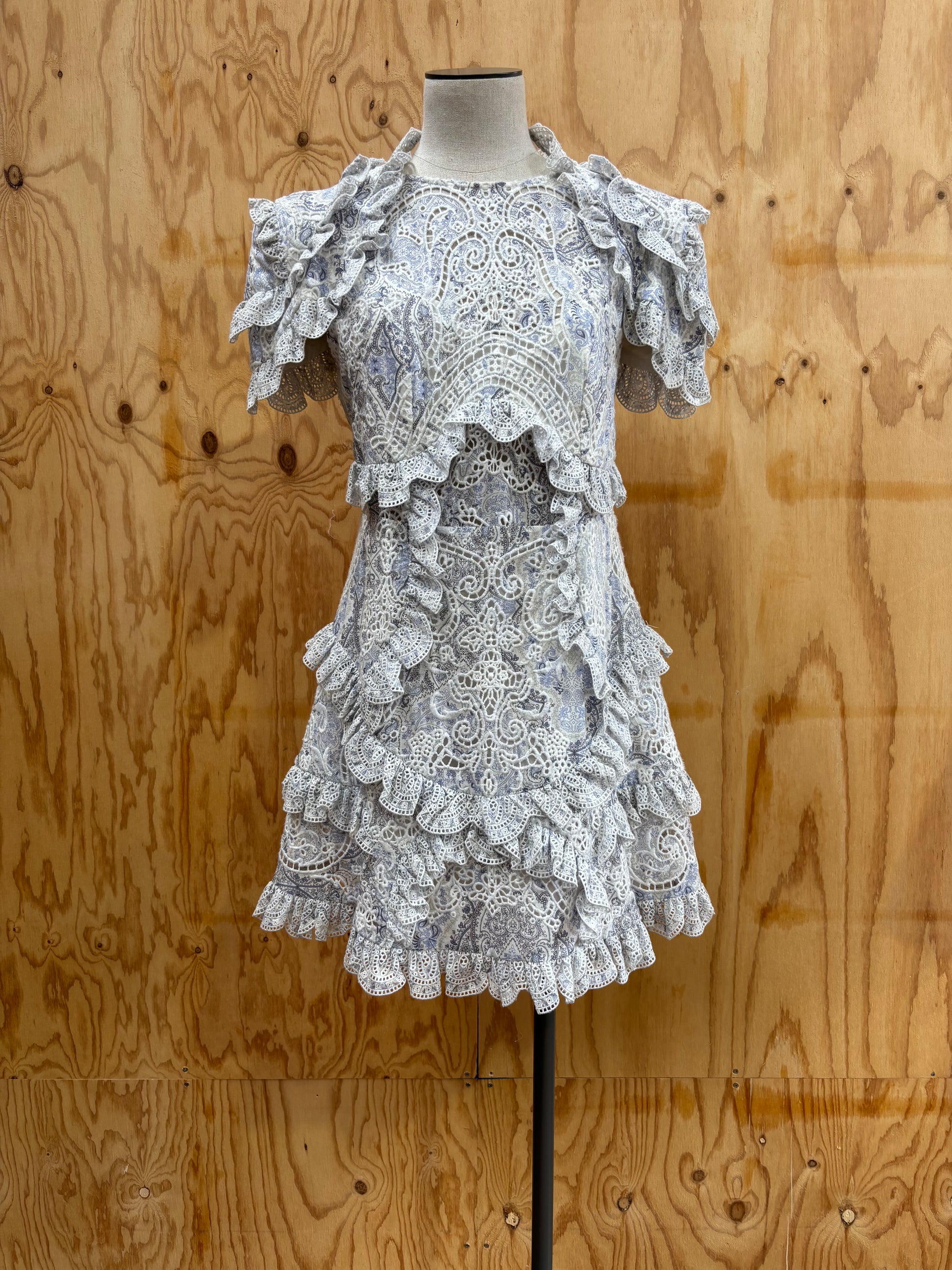 THEORY PURPLE HEATHER RAID TILE PRINT MINI DRESS - SIZE 12